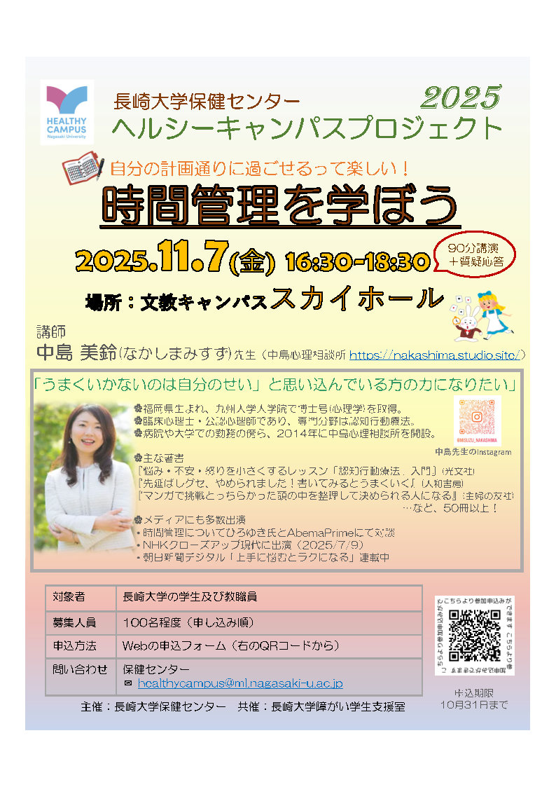 場所:長崎大学 文教キャンパス「スカイホール」(グローバル教育・学生支援棟4階)