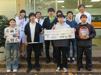 令和7年11月1日(土)長大祭1日目に、ヘルシーキャンパス・プロジェクトのひとつとして、学生サークルFLANとのコラボ企画『AED体験会』を開催しました。